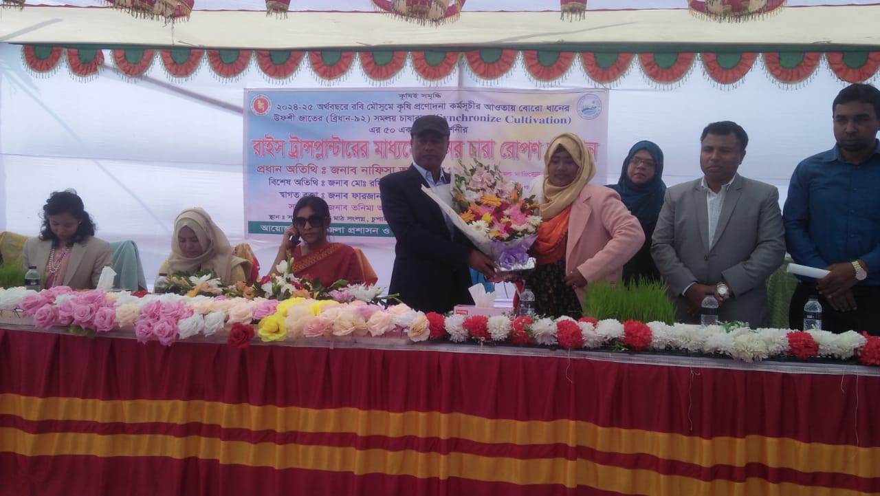 রোববার (৫ জানুয়ারী) দুপুরে উপজেলার জামালপুর ইউনিয়নাধীন চুপাইর সমলয় প্রদর্শনী মাঠ সংলগ্ন রাইস ট্রান্সপ্লান্টারের মাধ্যমে ধানের চারা রোপন কর্মসূচির উদ্বোধনী অনুষ্ঠানে উপজেলা নির্বাহী অফিসার তনিমা আফ্রাদ এর সভাপতিত্বে প্রধান অতিথি হিসেবে উপস্থিত ছিলেন গাজীপুরের জেলা প্রশাসক নাফিসা আরেফীন।