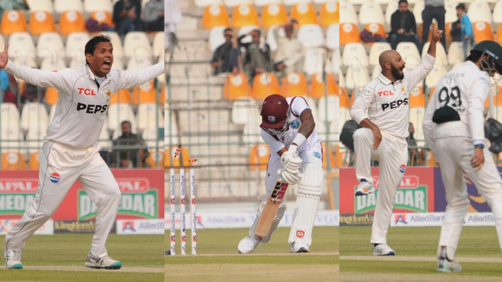 ব্যাট করতে নেমে শুরুতেই খেই হারায় সফরকারীরা। দলীয় ২১ রানে টপঅর্ডারের তিন ব্যাটারকে হারিয়ে রীতিমতো চাপে পড়ে ক্যারিবীয়রা। লুইস, কার্টি ও ব্র্যাথওয়েট— তিনজনকেই বিদায় করেন সাজিদ খান।