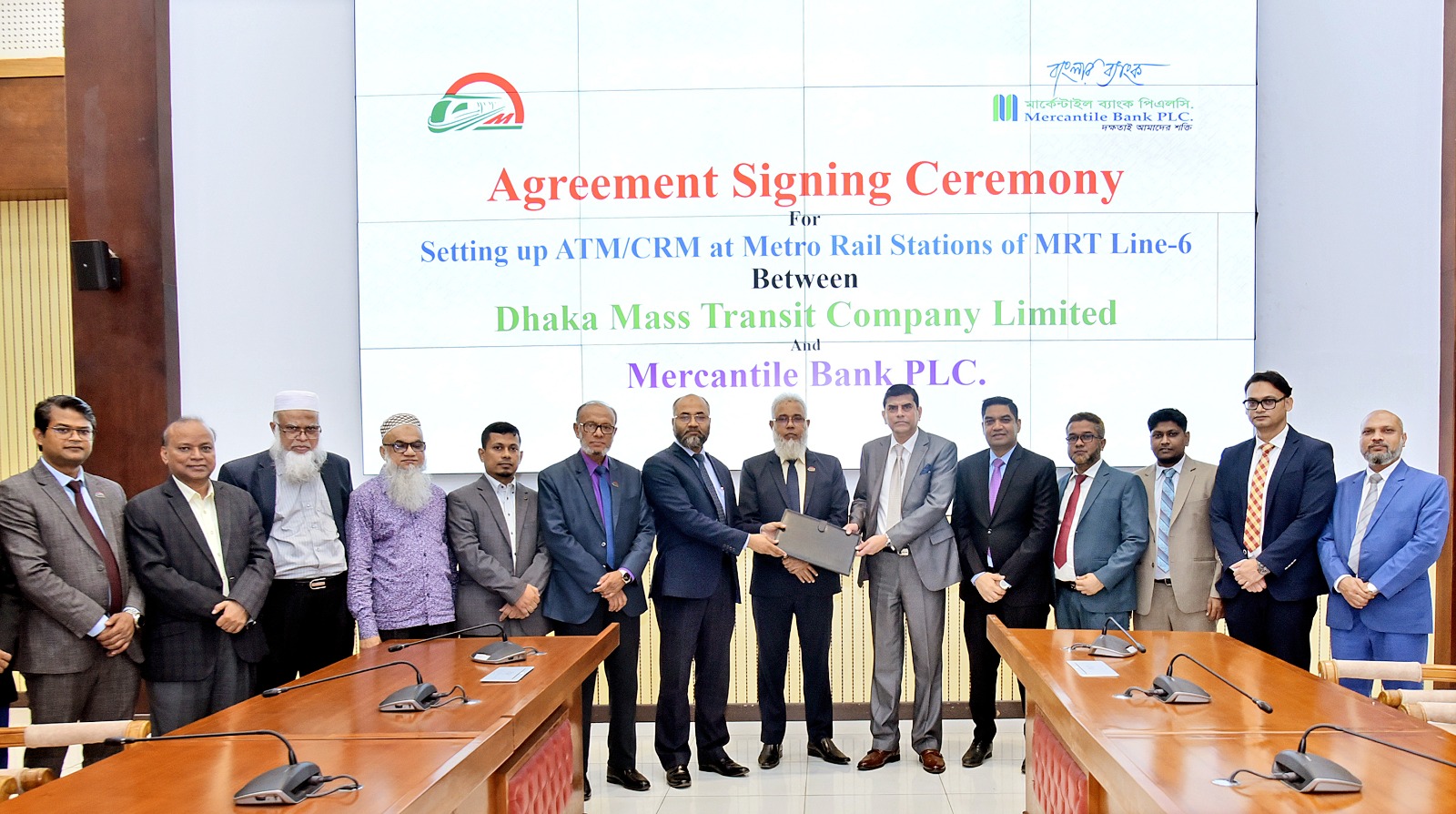 মার্কেন্টাইল ব্যাংক পিএলসি। ঢাকা ম্যাস ট্রানজিট কোম্পানি লিমিটেড (ডিএমটিসিএল) কর্তৃপক্ষের সাথে চুক্তি স্বাক্ষর করেছে