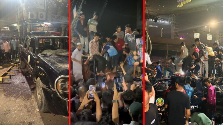 ঘটনাস্থলে পৌঁছে দেখা গেছে, পুলিশের গাড়ির ওপরে উঠে অভিযুক্ত কিশোরকে মারছে উত্তেজিত জনতা। এসময় পুলিশের গাড়িটিও ভেঙে দেয় তারা।