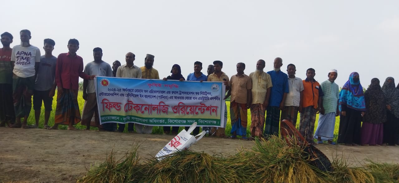 আমিনুল হক সাদী : কিশোরগঞ্জ সদরের মহিনন্দে কৃষকদের নিয়ে ফিল্ড টেকনোলজি ওরিয়েন্টেশন কর্মসূচি পালন করা হয়েছে। বৃহস্পতিবার বিকেলে উপজেলার সভাস্করখিলা মাঠে সদর উপজেলা কৃষি সম্প্রসারণ অধিদপ্তরের আয়োজনে ও প্রোগ্রাম অন এগ্রিকালচারাল এন্ড রুরাল ট্রান্সফরমেশন ফর নিউট্রিশন, এন্টারপ্রেনারশিপ এন্ড রেসিলিয়েন্স বাংলদেশ (পার্টনার) প্রকল্পের আওতায় এ ওরিয়েন্টেশন কর্মসূচি পালন করা হয়।