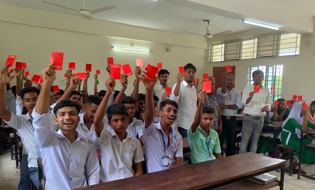 শিক্ষার্থীরা এ সময় লাল কার্ড প্রদর্শন করে বলেন, মাদক, বাল্যবিবাহ ও কিশোর অপরাধের বিরুদ্ধে তারা আজীবন সোচ্চার থাকবে এবং উন্নত চরিত্র গঠনের মাধ্যমে দেশের দায়িত্ববান নাগরিক হিসেবে গড়ে উঠবে।