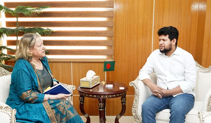 তথ্য ও সম্প্রচার উপদেষ্টা মো. মাহফুজ আলমের সঙ্গে সাক্ষাৎ করেছেন ইউনেস্কোর বাংলাদেশ প্রতিনিধি সুসান ভাইজ। মঙ্গলবার (২৩ সেপ্টেম্বর) তথ্য ও সম্প্রচার মন্ত্রণালয়ে এই সাক্ষাৎ হয়।