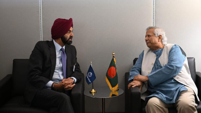 বিশ্বব্যাংকের প্রেসিডেন্ট বঙ্গা বলেন, বাংলাদেশকে অর্থনৈতিক পুনরুদ্ধারের পথে এগিয়ে নিতে ড. মুহাম্মদ ইউনূস গুরুত্বপূর্ণ ভূমিকা রাখছেন। বাংলাদেশের ইতিহাসের সবচেয়ে সংকটপূর্ণ সময়ে তিনি দায়িত্ব নিয়েছেন।