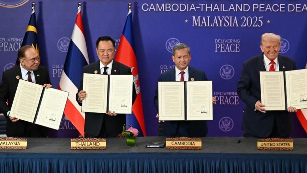 সীমান্ত বিরোধ মেটাতে দক্ষিণ-পূর্ব এশিয়ার দুই দেশ থাইল্যান্ড ও কম্বোডিয়ার মধ্যে ঐতিহাসিক শান্তি চুক্তি স্বাক্ষরিত হয়েছে। চুক্তির সাক্ষী হিসেবে উপস্থিত ছিলেন মার্কিন প্রেসিডেন্ট ডোনাল্ড ট্রাম্প।