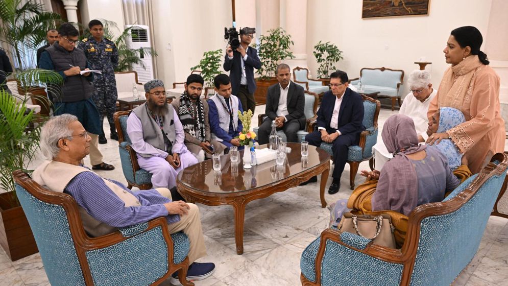 ইনকিলাব মঞ্চের মুখপাত্র ও ঢাকা-৮ আসনের সম্ভাব্য স্বতন্ত্র প্রার্থী শরিফ ওসমান হাদির পরিবারের সঙ্গে সাক্ষাৎ করেছেন প্রধান উপদেষ্টা প্রফেসর মুহাম্মদ ইউনূস। শনিবার (১৩ ডিসেম্বর) সকালে রাষ্ট্রীয় অতিথিভবন যমুনায় ওসমান হাদির ভাই আবু বকর সিদ্দীক, বোন মাসুমা এবং ইনকিলাব মঞ্চের তিন নেতা আব্দুল্লাহ আল জাবের, ফাতিমা তাসনিম জুমা ও মো. বোরহান উদ্দিন প্রধান উপদেষ্টার সঙ্গে সাক্ষাৎ করেছেন।