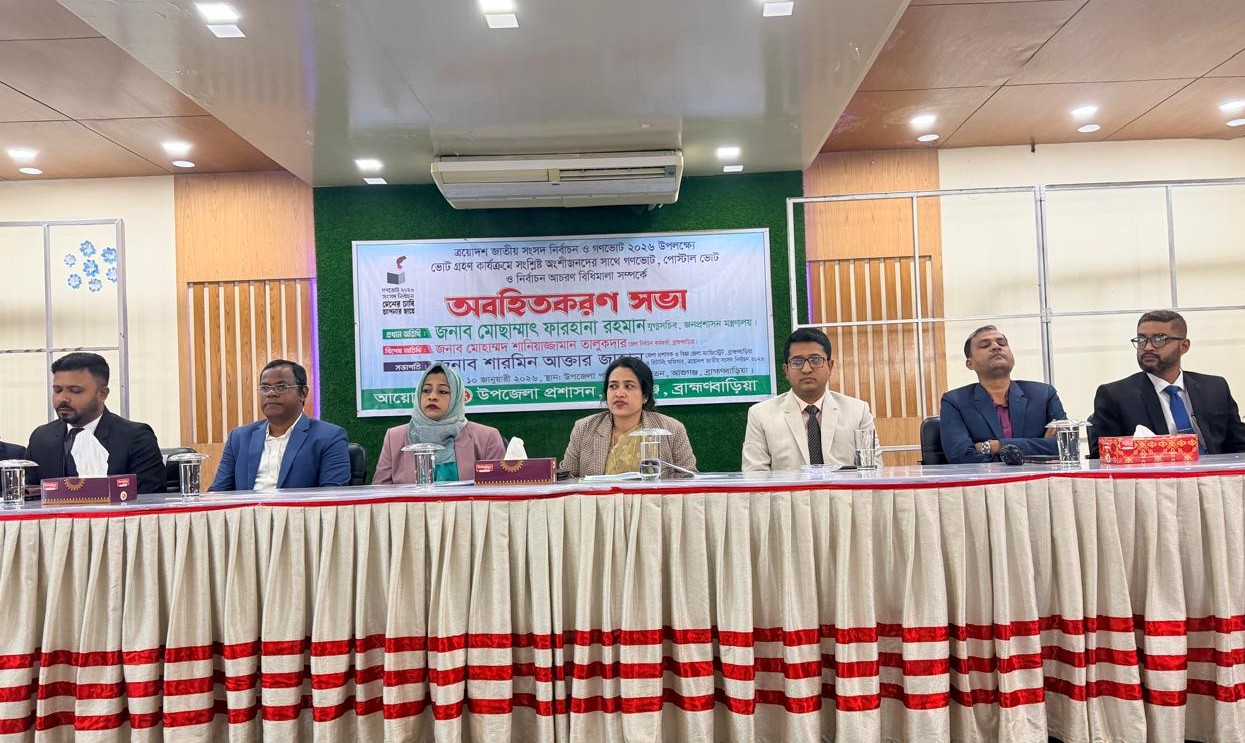 ব্রাহ্মণবাড়িয়া জেলা প্রশাসক ও রিটার্নিং অফিসার শারমিন আক্তার জাহানের সভাপতিত্বে অনুষ্ঠানে আশুগঞ্জ উপজেলার নির্বাচন প্রস্তুতি ও গণভোট সংক্রান্ত প্রচারণা বিষয়ে বিস্তারিত প্রেজেন্টেশন উপস্থাপন করেন উপজেলা নির্বাহী অফিসার রাফে মোহাম্মদ ছড়া।